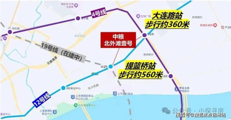 交通方面: 项目周围环绕三条地铁,步行约360米到4、12号线大连路站,步行约560米到12、19号线(在建)提篮桥站。