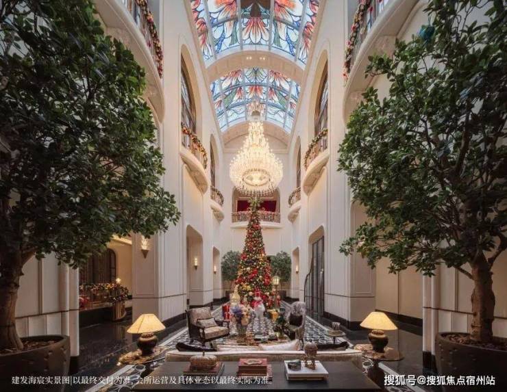 「华亭烟雨」灵感汲取新江湾湿地,引水入园,造设波光喷泉与孔雀雕塑,八株紫玉兰盛绽其间,将自然之力凝聚为艺术语言;「千步廊」融入绒绣、顾绣、海派玉雕等“上海十绝”技艺,将海派东方的摩登风韵尽致演绎,游廊不再只是通道,而成为连接艺术、自然与内心的感悟之廊;「孔雀厅」同源上海华尔道夫酒店的摩登精髓,穹顶巨幕彩绘玻璃,历经团队三轮打样,在上百片玻璃中甄选色彩调试,终成绮丽之景。