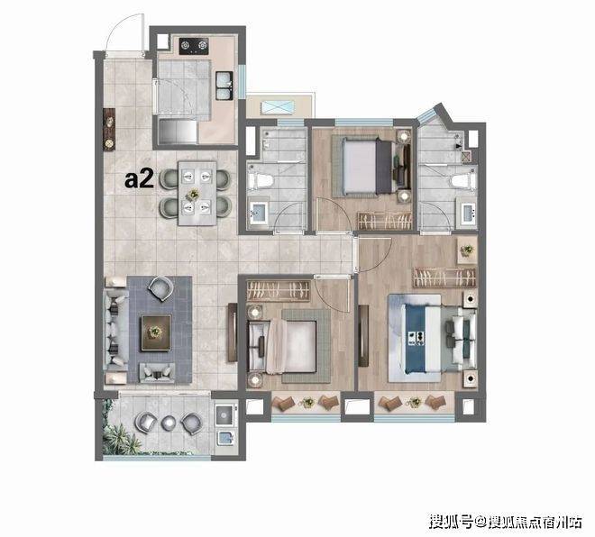 A2户型:建筑面积约97㎡3房2厅2卫