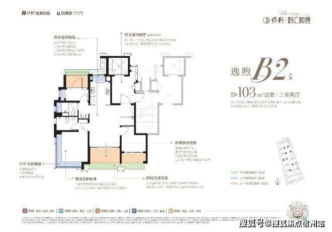 LDKB一体化格局,客餐厅、厨房、阳台通透相连,增强家人互动。保利都汇和煦售楼处电话400-856-9058
