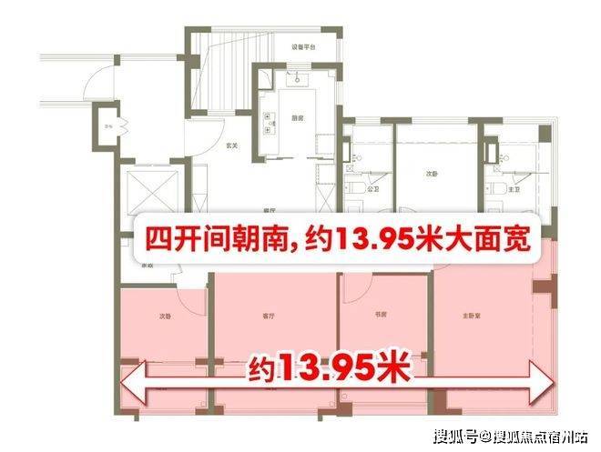 第二大亮点,是同级无敌的约13.95米南向大面宽!