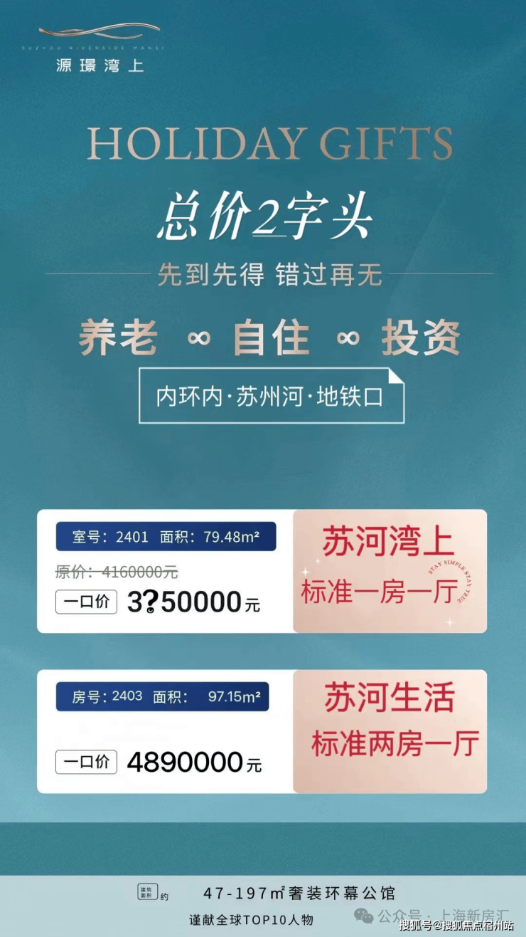 真苏州河一线 · 内环地标资产 ·源璟湾上 苏州河岸,一线河景精装SOHO公寓,总价250-869万!内环内 精工奢装豪宅50-193㎡奢装户型 内环内·2字头·环幕公馆