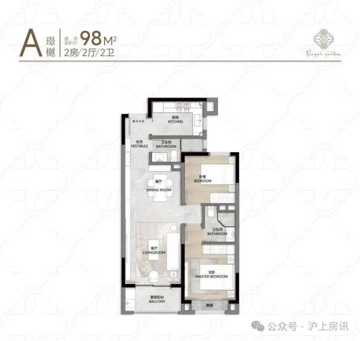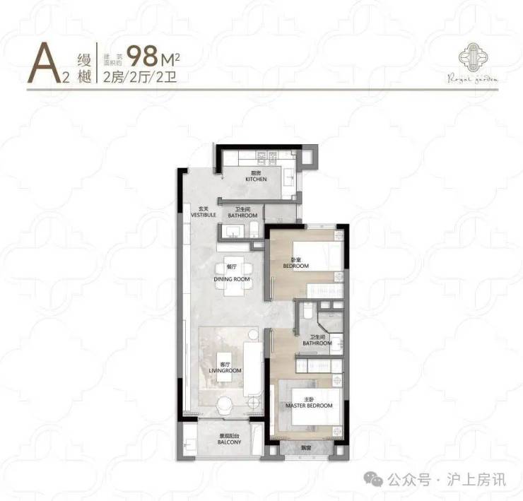 以98㎡两房为例,客餐厅一体化+阔景阳台,主卧套房设计,动静分区明确,收纳空间充足,告别“蜗居感”。