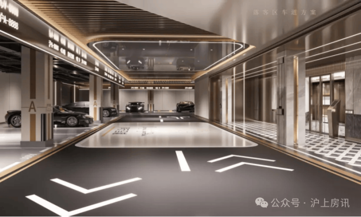 车库不仅配置了贯穿式鱼尾灯设计,在材质和细节上,车库地面还采用超耐磨地坪,精装吊顶过道,耐压防滑,静音环保。三合一门禁,也保障了业主的私密性。