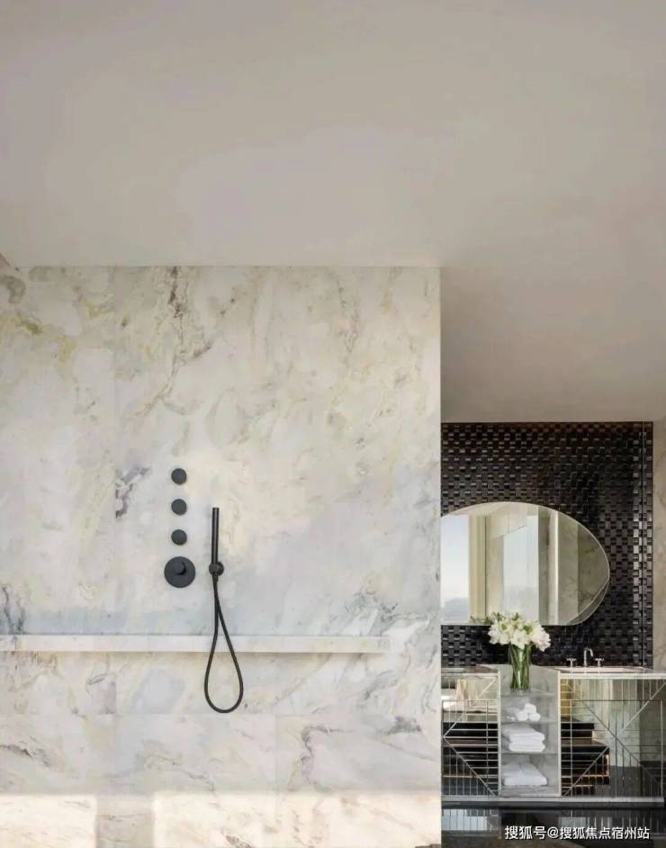 从选材来看,各种奢侈品级石材随处可见,比如与 北京钓鱼台国宾馆同款的意大利进口鱼肚白石材,造价高达约2万/㎡,被誉为“世界上最贵的石材之一”!
