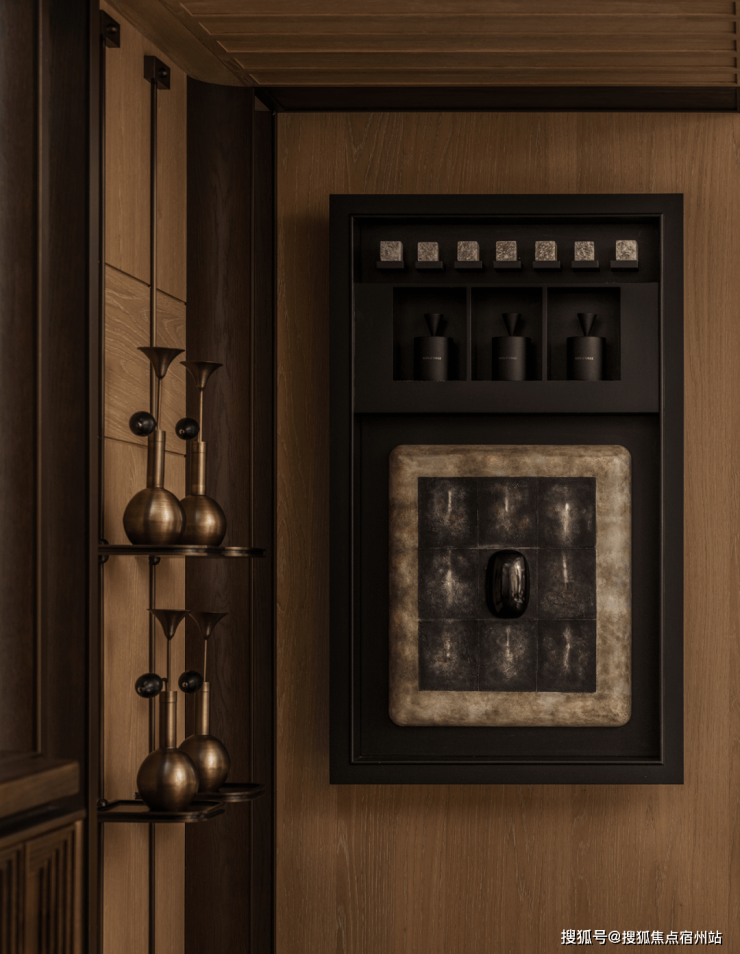 地下一层会客厅将硬装和软装的转承节奏发挥到了极致,每一个陈列展品是象限的延展,他们的华美可以成为各个位面的重点,却也是浑然天成的整体。