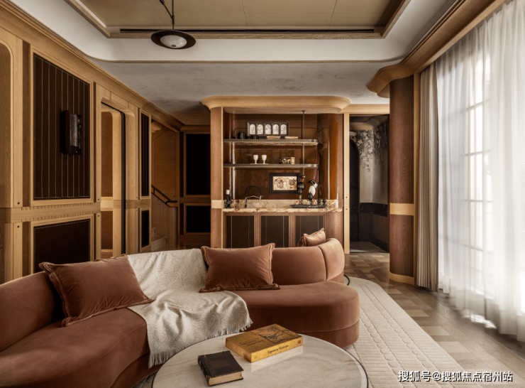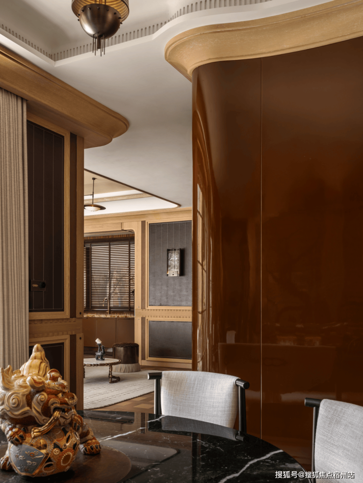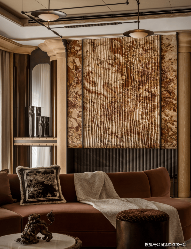 诞生于繁华之下的装饰艺术空间,以弧形组合沙发为中心,彻底告别现代设计惯性下的刻板布局,让沟通和互动成为该区域的核心。