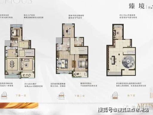 155㎡下叠 :终极改善首选, 私家庭院 + 地下两层 + 地上两层 , 约 6.9 米阔绰横厅 ,四开间朝南,全明采光。主卧整层奢享,带独立卫浴、衣帽间、观景露台, 实得面积超 260㎡ , 总价约 565 万起 ,圆城市精英别墅梦。
