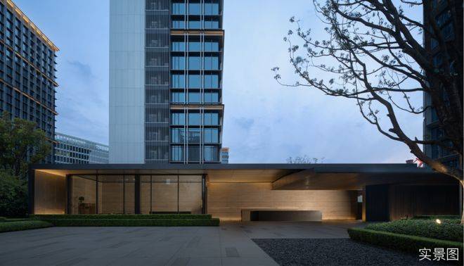 在设计上,会所采用围合式设计。下沉庭院通过大面积超白玻璃,巧妙的将庭院自然景观过渡到室内,使得室内和室外景观“内外合一”。