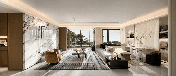 现在开发商都在卷奢材,保利天奕更是卷到天际,✅✅保利天奕售楼处电话:400 - 882 - 4258✅✅充分考虑业主的个性化需求,在电视背景板提供了新潘多拉、云中翡翠、弗朗明戈金三种结晶釉面岩板选择,成本更高,施工难度也更大