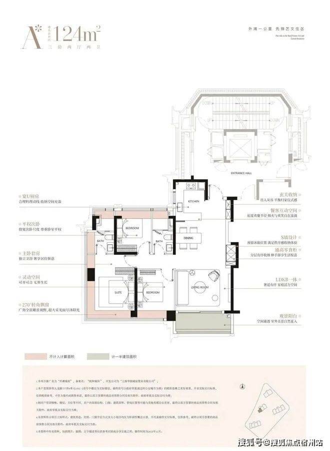 建面约124㎡经典的三房布局,高效满足主流家庭的居住需求,每一房间均设计有观景飘窗,让外滩的天际线成为日常生活的背景。创新的S墙设计与南向次卧“可开可合”的灵活隔断,在有限面积内实现了功能与美感的精妙平衡。
