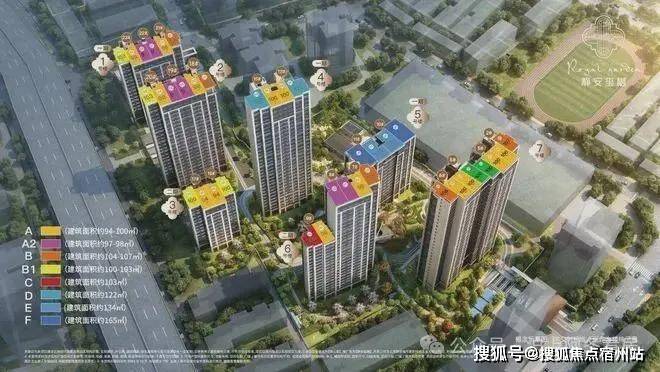 主力户型为建面约94-165㎡的2-4房,得房率最高达79%,设计强调动静分离与全龄适配(如98㎡两房客厅开间4.2米,165㎡四房四开间朝南)。14
