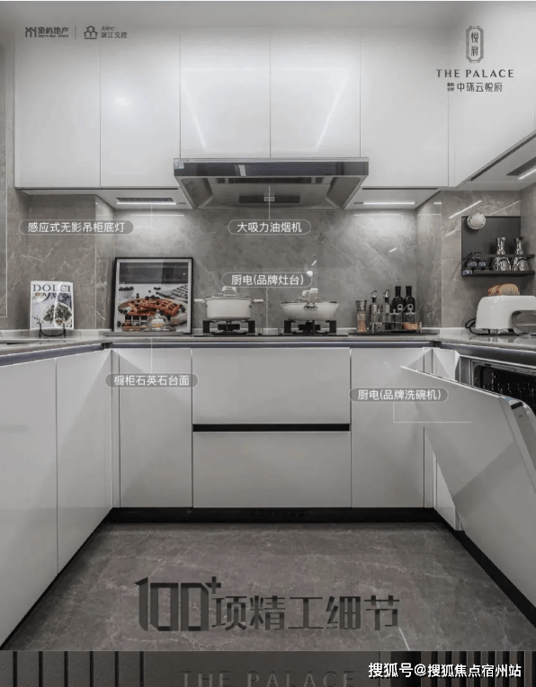 厨房空间,甄选 西门子新款的抽油烟机、灶具、洗碗机等,甚至连大部分项目不配备的冰箱也是交付标准;还特别 配置了轨道插座、前端净水器和凉霸;吊轨金属玻璃移门,既美观又方便清理。
