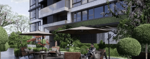 整体效果现代精致,十分符合当下年轻人的审美观;星级酒店式入户门,挑高约7米,宽约60米;石材金属线条背景墙加暖色系夜灯搭配,中庭花园水岛层叠、景墙错落,槭树青红间季节流转的温情脉脉展现,精致的水景让居住者仿若初入剧宴,感受剧目的艺术呈现……
