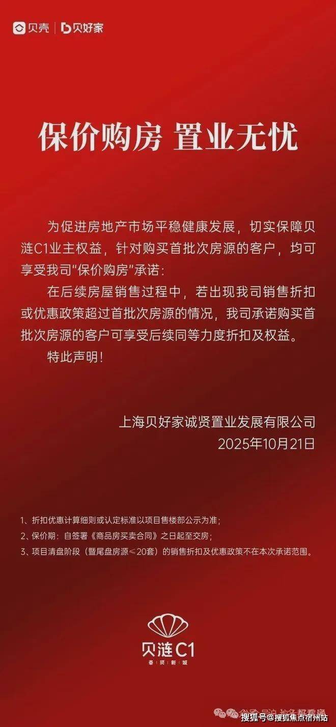 10月21日,贝壳旗下贝好家在上海的首个项目“贝涟C1”发布公告,推出“保价购房”承诺:凡购买首批房源的客户,若后期出现更大力度的销售折扣或优惠,可同步享受同等级别的权益补差。