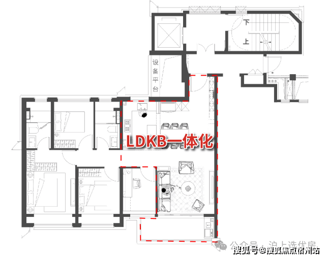LDKB一体化 的设计,将客餐厅、厨房融为一体,打破空间便捷的同时,尽可能地提升公区的空间使用率,尺度感超强,可轻松承载会客、家庭聚会、生日派对等场景。