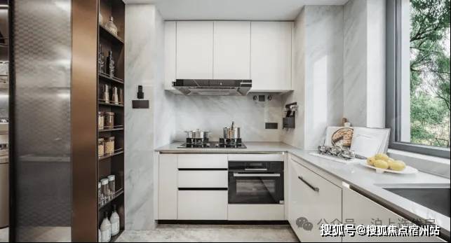 双套房设计的“豪华感”更是实打实的兑现。南向老人房带独立卫浴,解决长辈起夜不便的问题;样板间里, 博世六件套厨电(燃气灶、油烟机、洗碗机、蒸烤一体机、双冰箱) 整齐排列在厨房,要知道,这配置连市中心12万+㎡的豪宅都鲜少配齐。