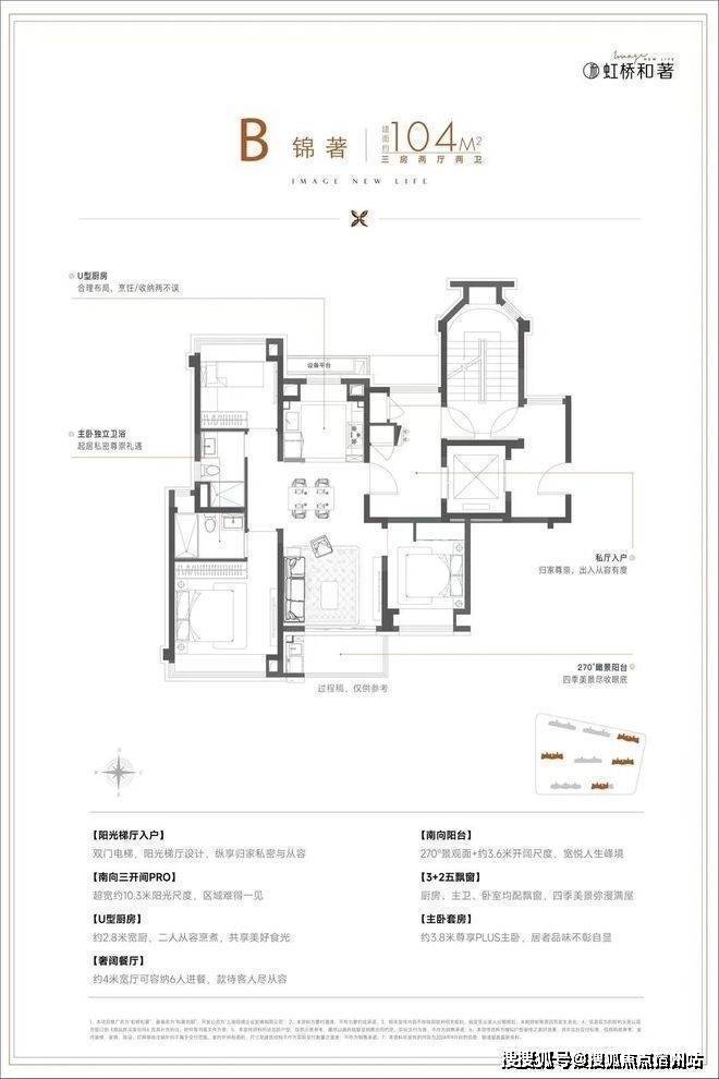 建面约104㎡舒适三房,三开间朝南+动静分区,设计水准颇高。特别是宽景阳台的设置,为客厅配备一幅iMax广角视野,多角度观赏社区美景,适配对品质有需求的首置或首改客户。保利虹桥和著售楼处电话:400-8266-670