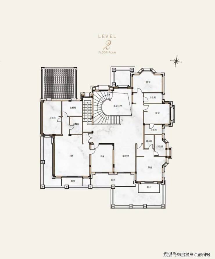 纯地上两层,建面约850㎡(7房4厅6卫)
