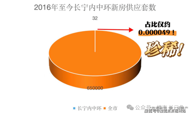 拉取网上房地产近10年(2016年至今)的数据,全上海合计入市新房65万多套,其中属于长宁内中环的只有32套,占比仅约0.000049!基本一面世就被抢光的状态!