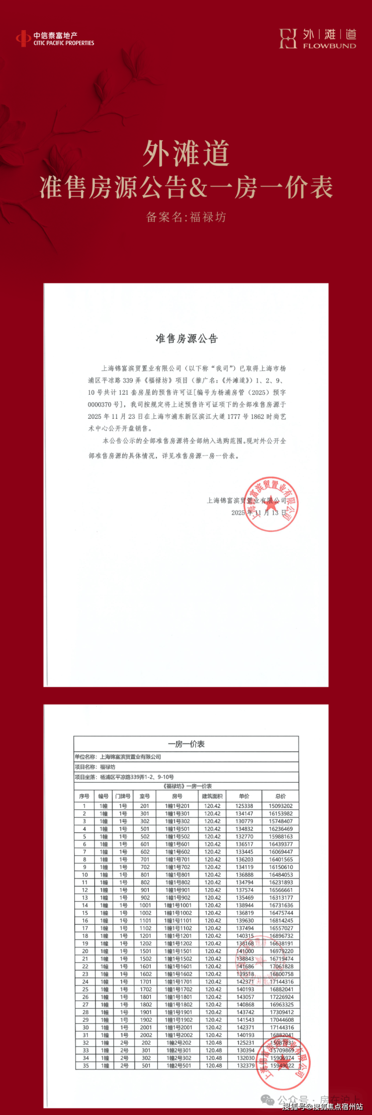 据悉,中信泰富外滩道 二批次将推约100-220㎡3-4房,共计119套房源,均价138800元/㎡,正在认购!