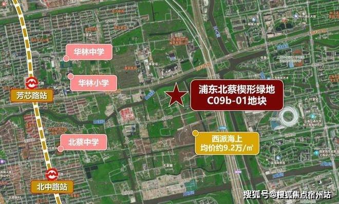 该地块位于浦东内中环,属于浦东北蔡板块,距离18号线芳芯路直线距离约1.5公里。地块的东面就是张江科技科学城和罗山路高架。
