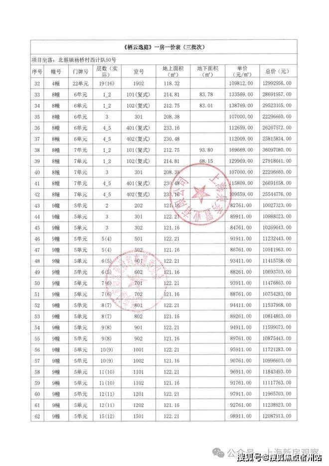 上期一房一价表如下: