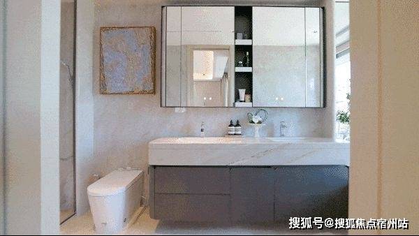 主卫同样配有纵向飘窗,空间通透敞亮,毫不压抑。全明卫生间配置高端体验,选用恩仕智能马桶,汉斯格雅龙头花洒与杜拉维特台盆共同打造高品质洗漱动线,线性浴霸实现快速均匀取暖。镜柜巧妙收纳日常用品,让台面长久整洁清爽,更特别配备美妆冰箱,贴心照顾护肤需求。