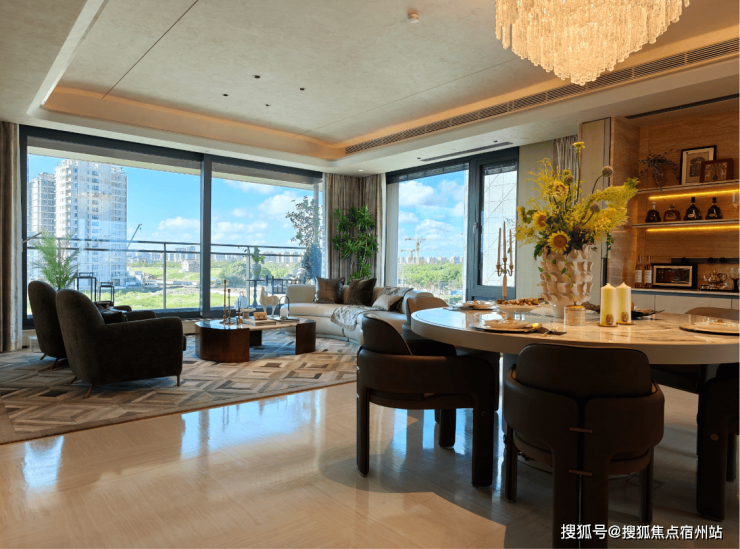 客餐厅一体化设计,连接宽景阳台,空间通透又开阔,不仅提升了空间的利用率,更让家人之间的互动更加便捷——做饭时可以随时关注客厅的孩子,朋友来访时,客厅与餐厅形成开阔的社交空间,尽显主人的品味与格调。宽景阳台视野开阔,既能作为休闲区,摆放桌椅、种植花草,享受午后时光;也能作为晾晒区,满足日常居家需求,实用与美观兼具。