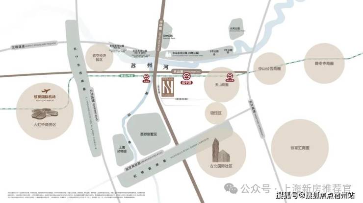 通勤方面,项目直线距离2号线威宁路站约800米、北新泾站约300米,东向2站中山公园,4站静安寺,6站人广。西向3站虹桥机场,4站虹桥火车站。