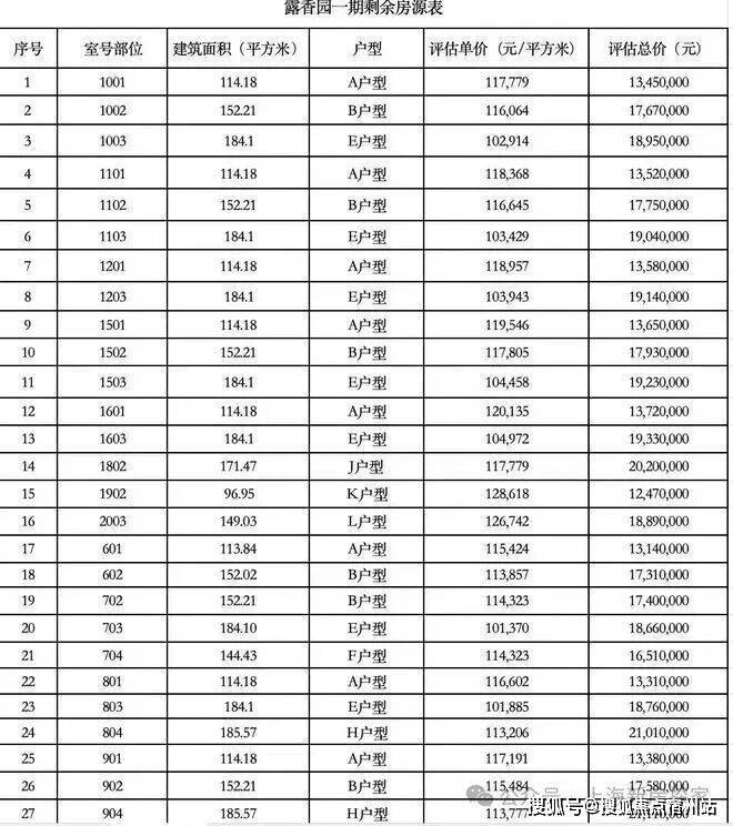 最新一房一价表: