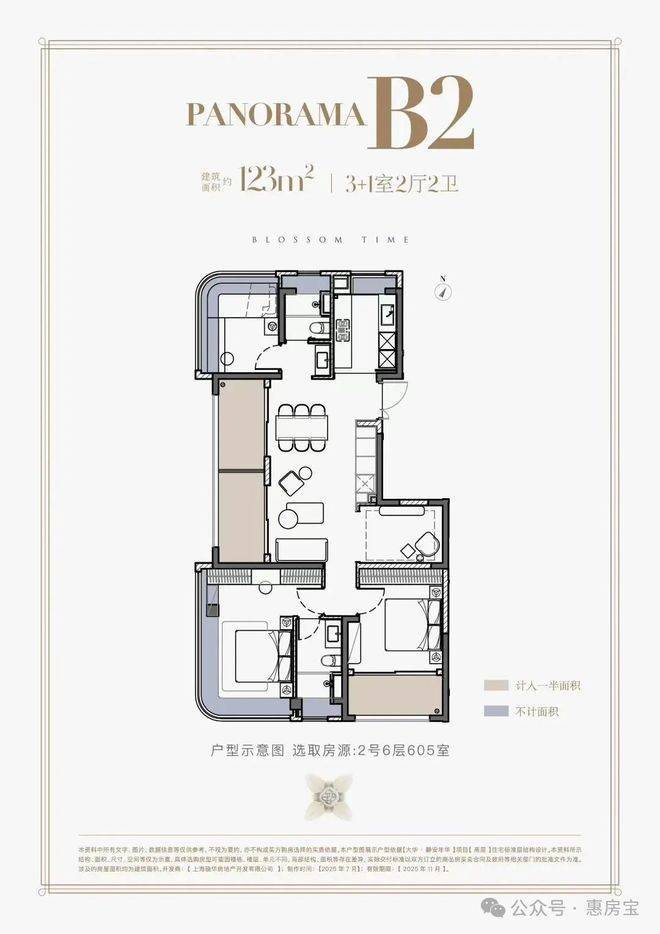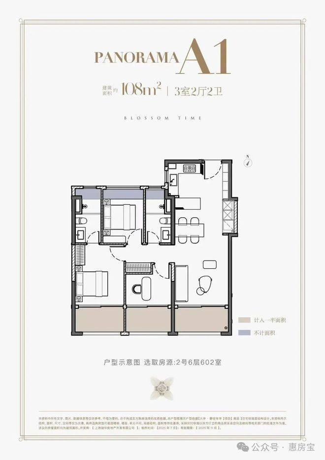 高层建面约108㎡和123㎡两种户型,均采用这一突破性设计,相较于此前和樾长宁120㎡双阳台设计,实现质的飞跃。