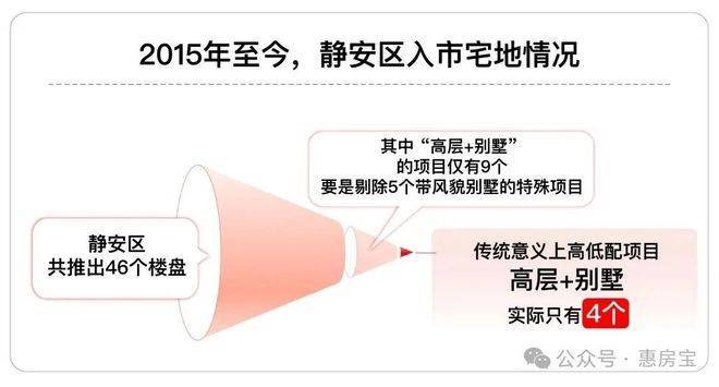 数据印证其珍贵:自2015年至今,静安区共推出46个楼盘,其中 “高层+别墅” 项目仅9个,若剔除5个带风貌别墅的特殊项目,传统意义上高低配项目实际只有4个。