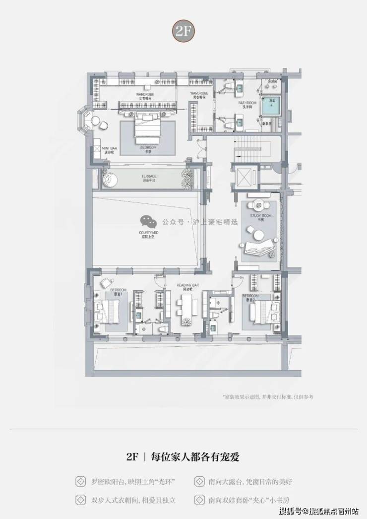 • 一层长辈套房设计,南向独立小庭院,莳花弄草,晨练太极自在四季