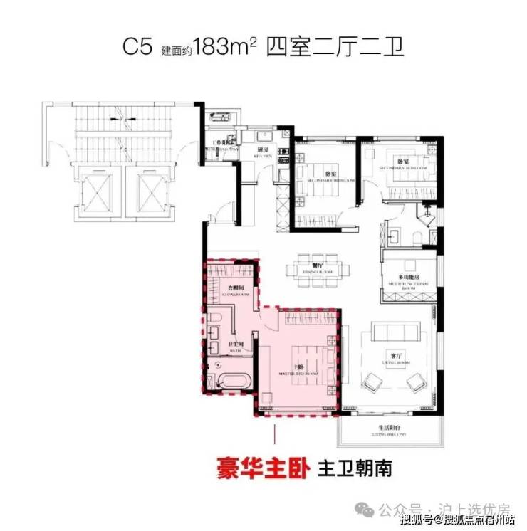 而且你仔细看, 2个套房分列客厅左右 ,并且配置极为相似。