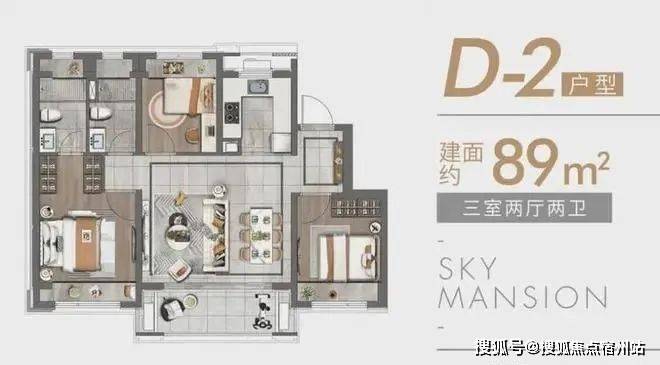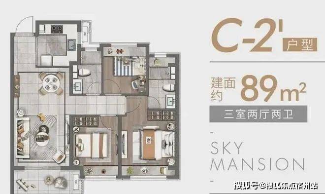 项目洋房的得房率高达约81%,✅✅宝山天铂售楼处电话:400 - 882 - 4258✅✅高得房率为刚需置业者们带来了一个建筑面积约89㎡3房2卫的神户型。