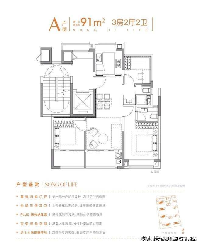 建面约102㎡三房两卫则主打“舒适升级”✅✅保利虹桥和颂售楼处电话:400 - 8824 - 258✅✅