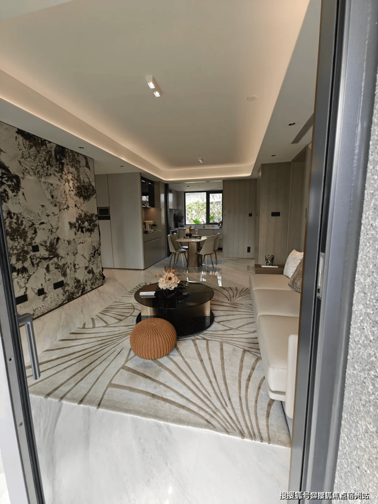 产品设计上,项目尽显匠心,打造4栋14-17层小高层,共计246套房源,围合式布局保障了居住舒适度与私密性。建筑外立面采用“鎏金幕墙”设计,大面积运用玻璃材质,搭配T型悬挑结构与流体曲面线条,通透且具未来感,宛如流动的建筑艺术品。社区虽仅有4栋楼,但景观与公区配置堪称高配,打造“一进二礼三聚四迎五享”归家礼序,搭配“花汀缦庭”森林归家轴、云幕会客厅等宅间花园,营造度假式居住氛围。同时配备地库+一楼双精装大堂,归家仪式感拉满。