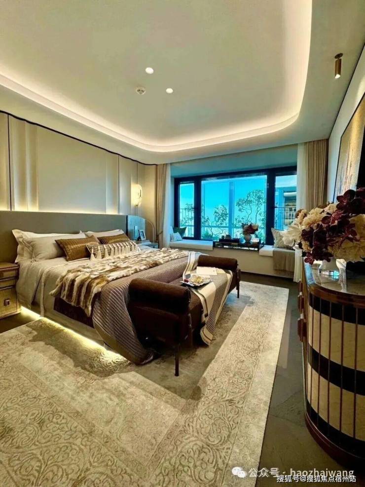 主卧大套房设计带超大主卫和衣帽间 ,面积约50㎡ ,尺度感与市面上近300㎡的顶豪拉平。