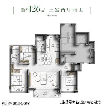 建面约 126㎡ 3 房 2 厅 2 卫(总价约 901 万起) 爆款横厅户型,南向面宽约 12 米,约 5.9 米超大横厅设计,空间开阔大气。独立玄关入户,仪式感十足;全屋多飘窗赠送,实际使用面积超百平;主卧套房配套完善,适配三口之家及二胎家庭过渡居住。