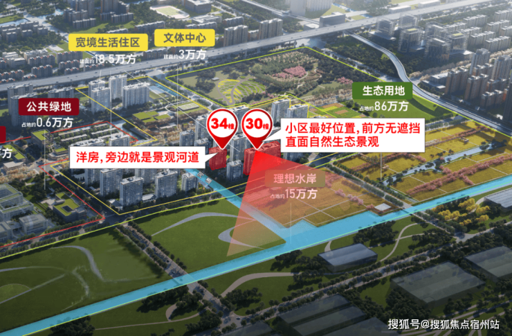 生态:天然河道穿社区,6 座口袋公园环绕,滨水景观