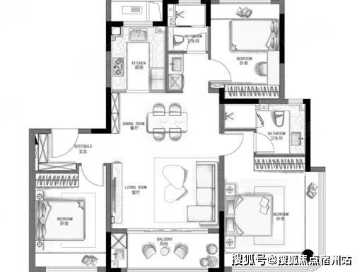 (2)建面约 115㎡ 3 房 2 厅 2 卫 —— 爆款 “鲲鹏阁”