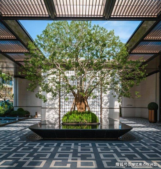 社区入口,百米酒店式落客门庭、超60年树龄铁冬青打造的“大树聚场”、潘多拉发光奢石拼花的 “躺平水院”,是家人休憩、邻里小聚的好去处;
