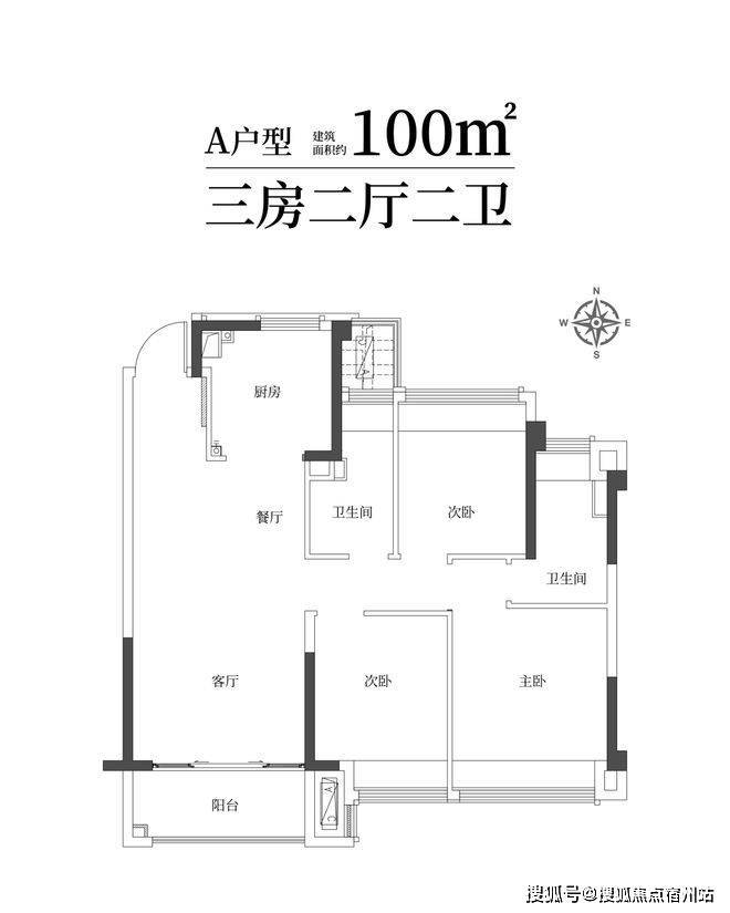 建筑面积约100㎡雅致三房两卫 ,满足二娃时代