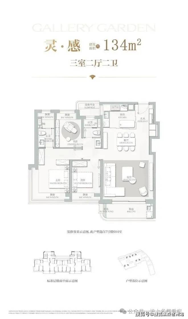 建面约134㎡3房2厅2卫,主力总价约1500-1700万,户型设计在上一个户型的基础上将各功能间尺度升级的同时,也做了一些更人性化的迭新。