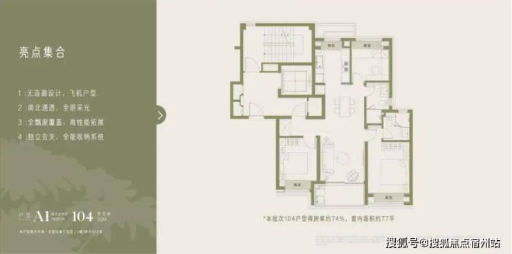 该楼栋的主力户型,即为前文提到的104㎡三房
