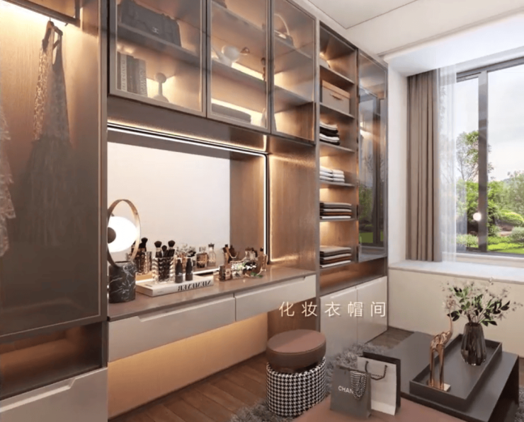 第三,主卧空间带双排步入式衣帽间,卫浴间更是标配双台盆、淋浴房、浴缸,妥妥豪宅级配置。