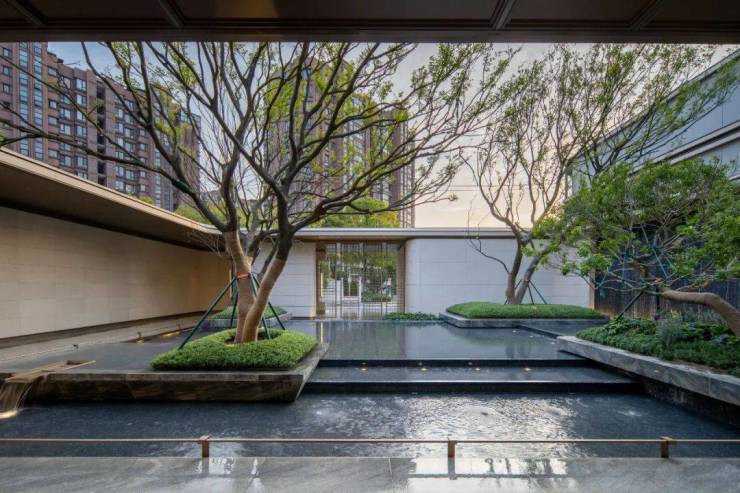 地上动线:一进香樟大道、二进奢阔门庭、三进悬瀑水镜、四进高奢大堂、五进光影回廊。归家之路上,度假感扑面而来的同时四季时令植被完美相融,是风景,亦是生活。