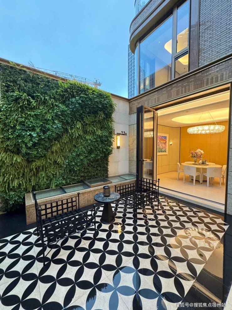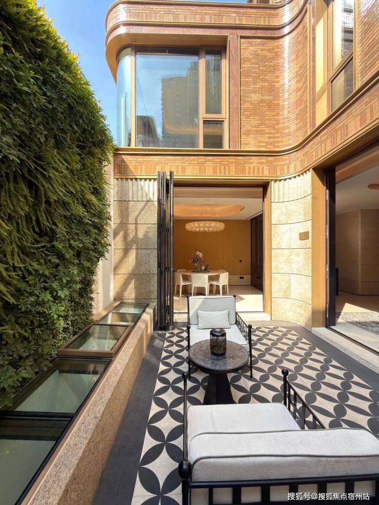 外立面用宜兴手工釉面陶砖,187 种砖型、8 种拼法,历久弥新、质感高级,区别于普通豪宅的玻璃幕墙,兼具历史底蕴与现代审美