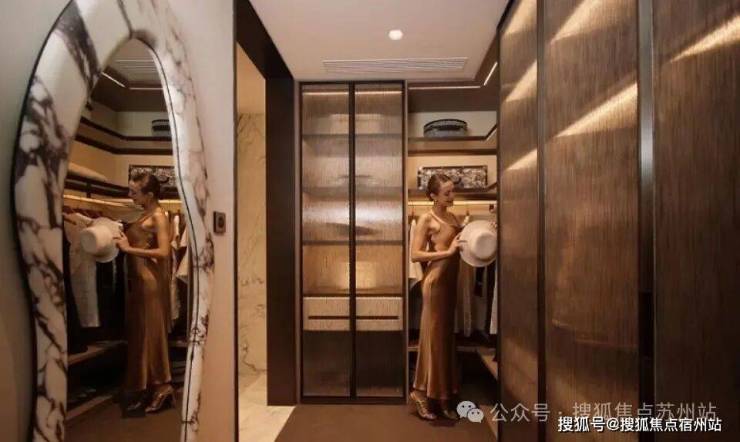 主卧大套房设计带超大主卫和衣帽间 ,面积约50㎡ ,尺度感与市面上近300㎡的顶豪拉平。